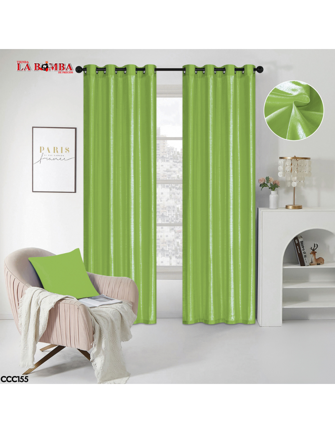 CORTINA SOLIDA VERDE PERA60*90 CH 48/1